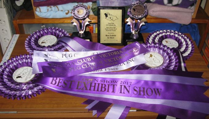 We had a successful day at the Pug Club of Victoria Open Show 2017 with Molly taking out Best Exhibit In Show. Her son Harry was Opposite Puppy In Show. Olly, Shelby and Livvy all placed 2nd in their classes. Very happy with their results.